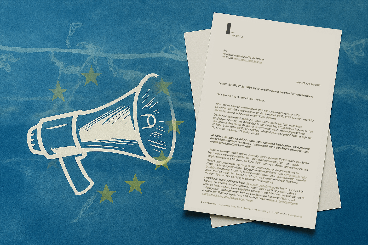 In einer breiten Allianz rufen der Kulturrat Österreich, die IG Kultur Österreich, die Landesorganisationen der freien Kulturarbeit sowie Kulturorganisationen die zuständigen Bundesminister*innen auf, Kultur in allen Politikfeldern des neuen EU-Finanzrahmens zu verankern – nicht nur in anerkennenden Worten, sondern in konkreten Programmlinien mit klarer budgetärer Dotierung.
