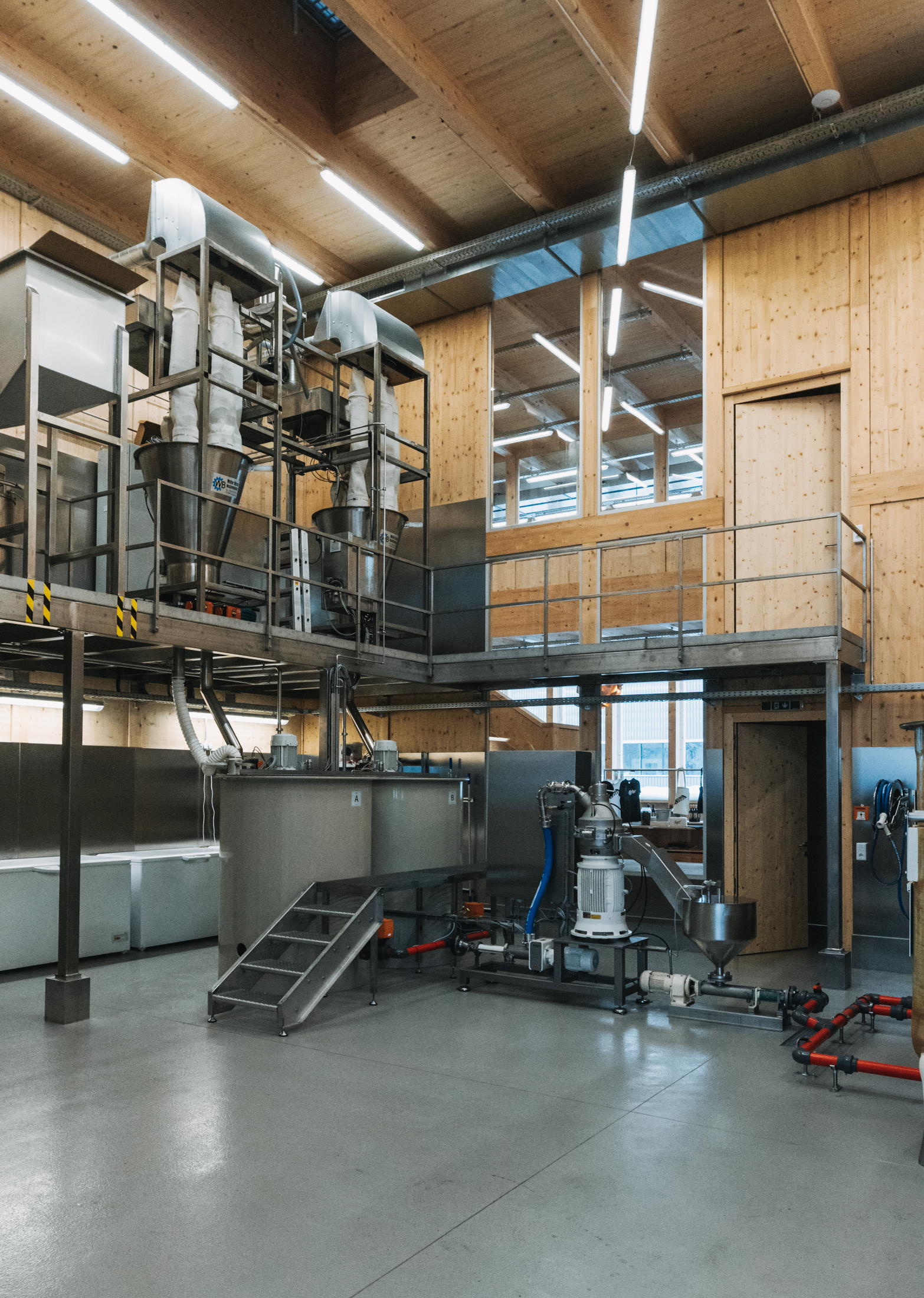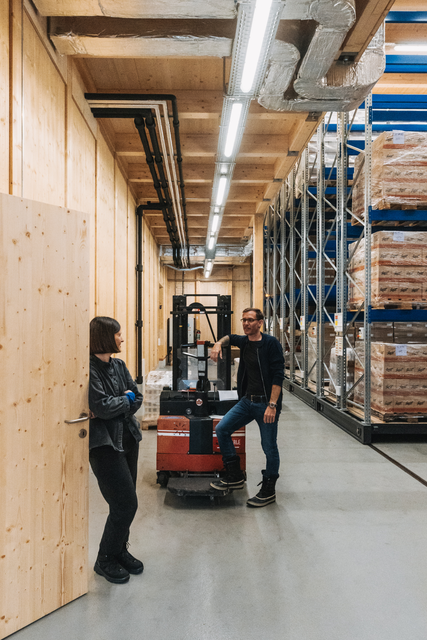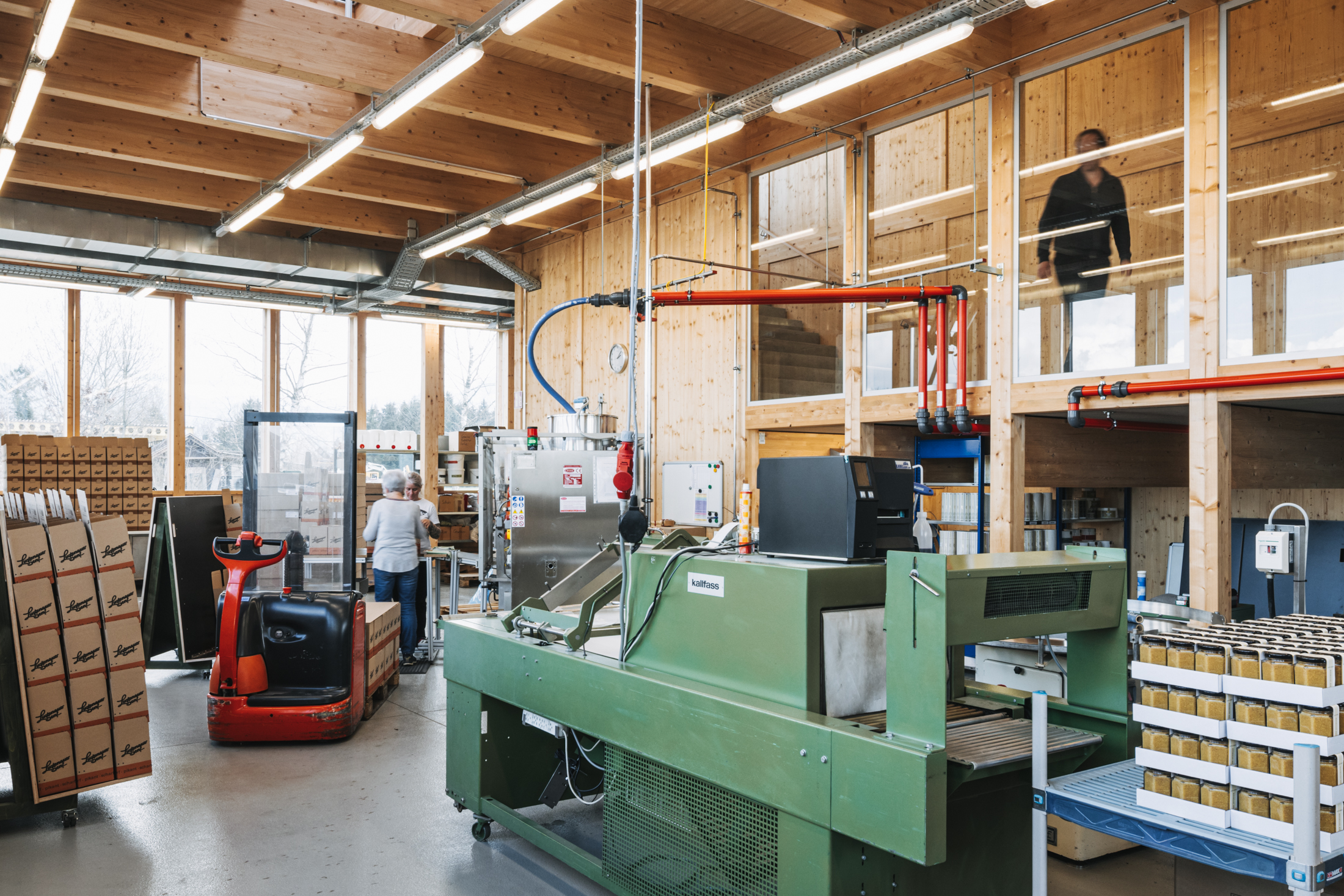 Gemeinsam mit der W*ORT-Leiterin Gabi Hampson besuchte unsere Geschäftsführerin Mirjam Steinbock den Betrieb, um Stefan und Felix Bösch zu treffen. Das 2024 neu eröffnete Gebäude eint den Senfladen, das Büro und die offene Küche mit der Produktionsstätte und dem Senfmuseum und riecht weniger nach Senf als nach Holz. Die Optimierung der Räumlichkeiten entstand in Zusammenarbeit zwischen Senfer:innen und Architekt:innen. "Entstanden ist ein Baukörper, der weit über einen Gewerbebau hinaus geht. Durchblicke, Einblicke und Transparenz zeigen ehrlich und einfach, wie ein Lebensmittel entsteht", so die Architektin Julia Kick erläuternd.
