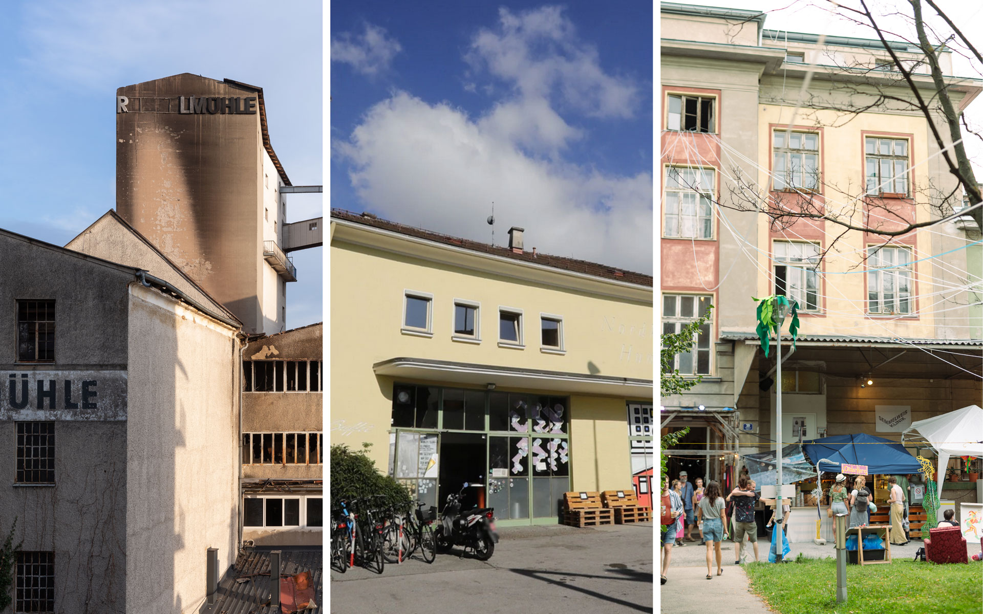 vlnr: Pioniernutzung Rösselmühle Graz, Talstation Innsbruck, Semmelweisklinik Wien © Johanna Lea Lassnig